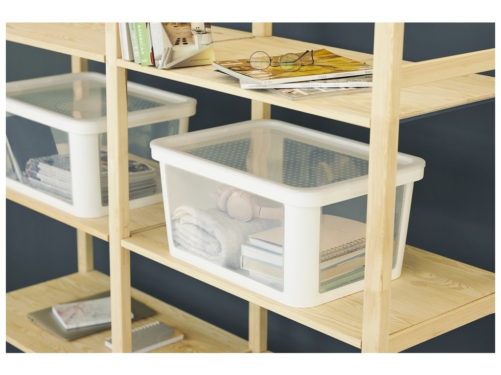 Box působí velmi lehce díky průhledným stěnám a obsah lze kdykoli vidět.