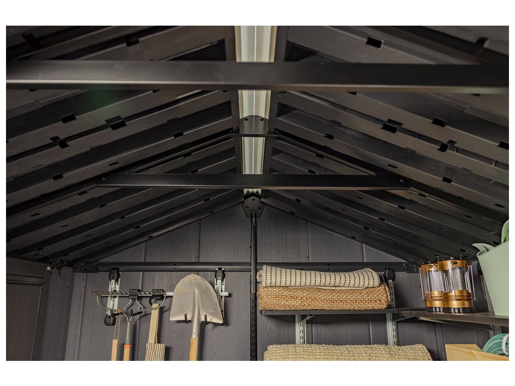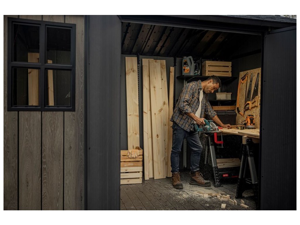 S jeho dvojitými stěnami a možností flexibilního sestavení, APEX 11x7,5 se může přizpůsobit jakémukoli prostoru. Stejně tak umístění okna a dveří je možné uzpůsobit. Díky širokým dvojitým dveřím a pevné designové střeše se stává ideálním úkrytem pro širokou škálu zahradního náčiní, nábytku a sekaček. Jeho vysoce odolná podlaha, schopná unést až 150 kg na metr čtvereční, poskytuje spolehlivou základnu pro Vaše potřeby.
