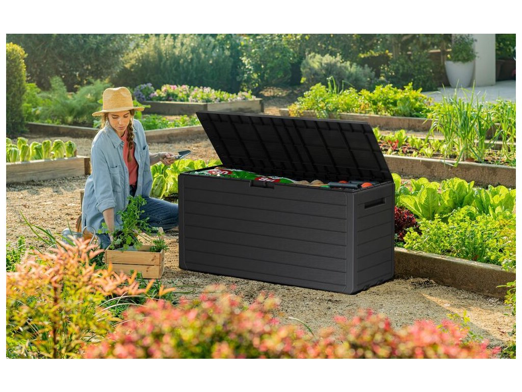 Plastový box pro uložení nejrůznějších předmětů (podušky, zahradní náčiní...) od firmy KETER.