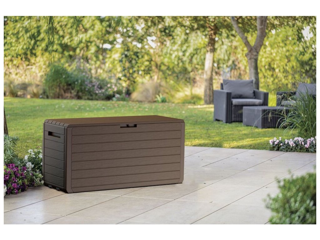 Jeho struktura v imitaci dřeva se skvěle hodí do každé zahrady či terasy.