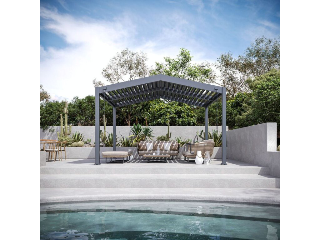 Prémiová zahradní hliníková volně stojící bioklimatická pergola o rozměrech 3,6x4 metrů představuje ideální způsob zastřešení Vašeho venkovního posezení.