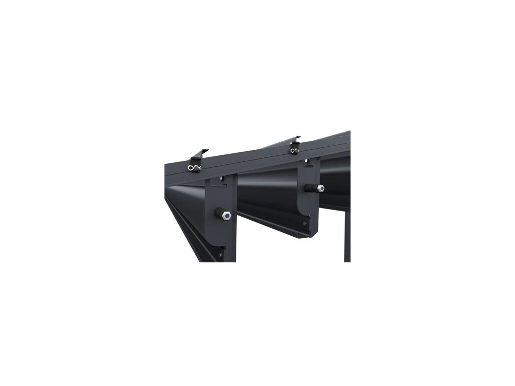 Velmi pevná a stabilní konstrukce v antracitové barvě RAL 7016, v matné povrchové úpravě se hodí do každého prostoru, není zapotřebí vrtat do stěny. Pergola je vyrobena z vysoce kvalitního hliníku, který je ošetřen práškovou barvou, což zaručuje odolnost vůči povětrnostním vlivům.