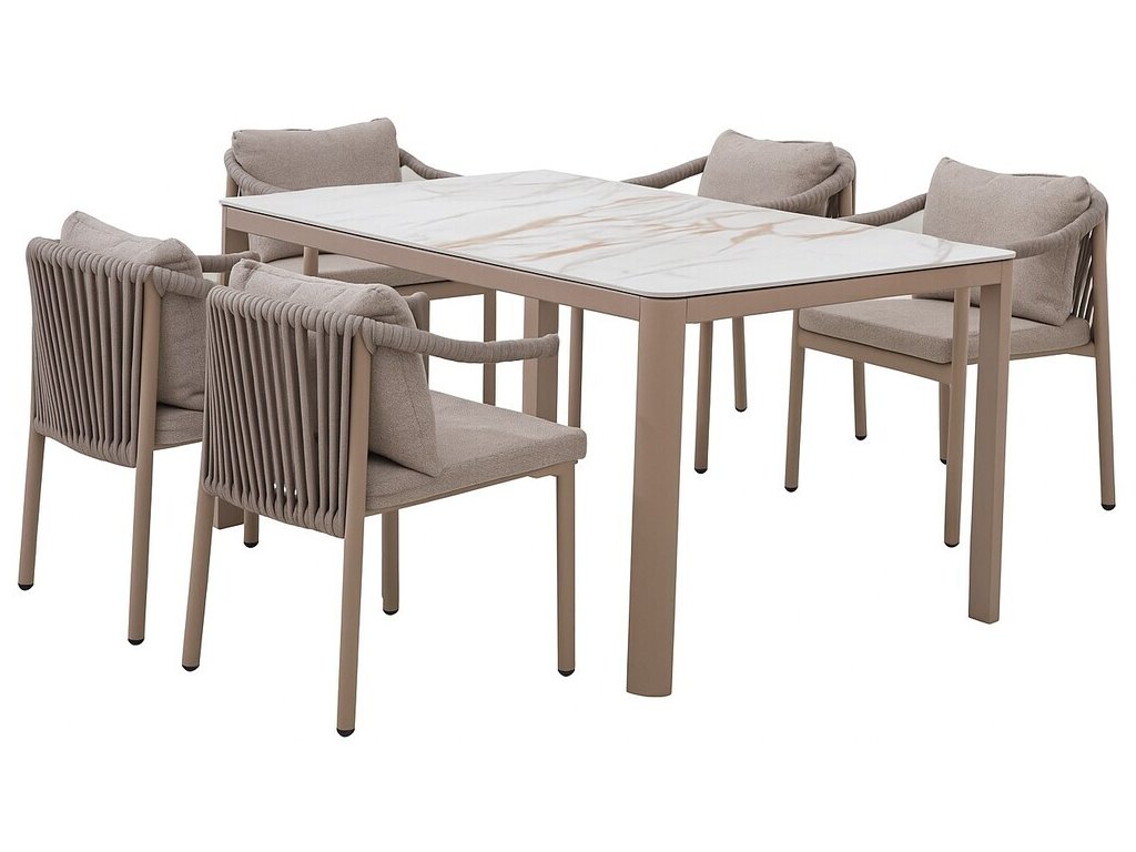 materiál: | hliníková konstrukce, lankový výplet, stolová deska ze slinutého kamene, podušky polyester 5cm |