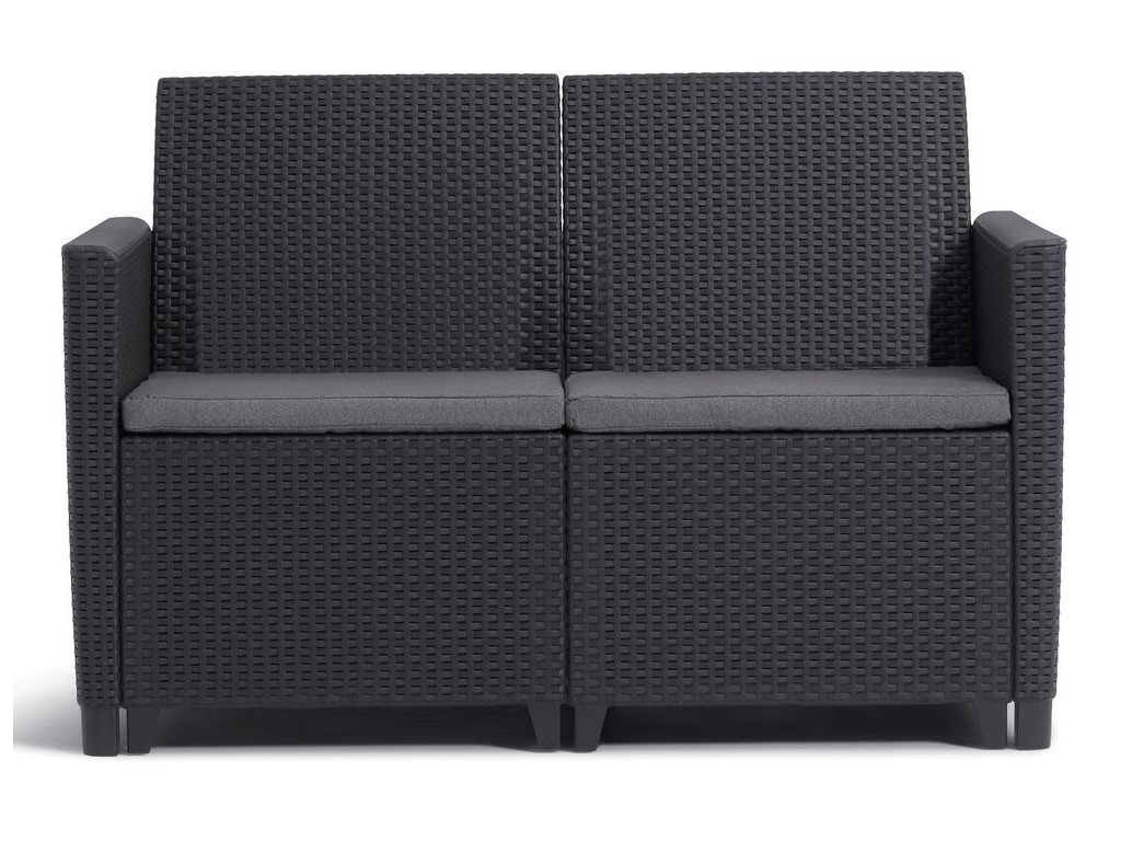 Sofa je vyrobeno z lisovaného plastu v imitaci přírodního ratanu.