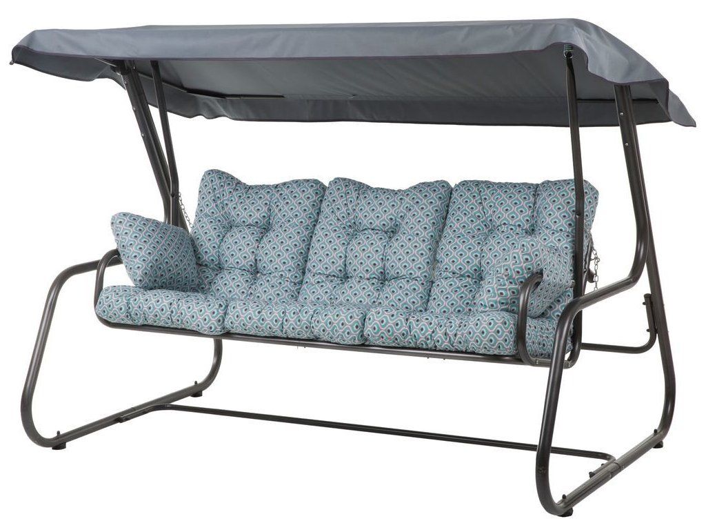 Houpačka pro 4 osoby s rozkládací sedačkou, která je upevněna na pružinách.