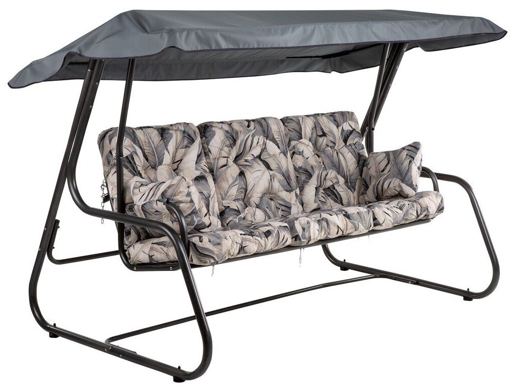 Houpačka pro 4 osoby s rozkládací sedačkou, která je upevněna na pružinách.