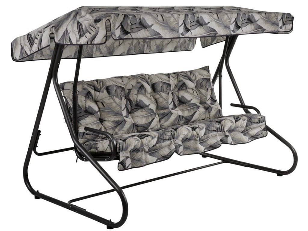 Houpačka pro 3 osoby s rozkládací sedačkou upevněnou na pružinách. Solidní, pevná konstrukce.