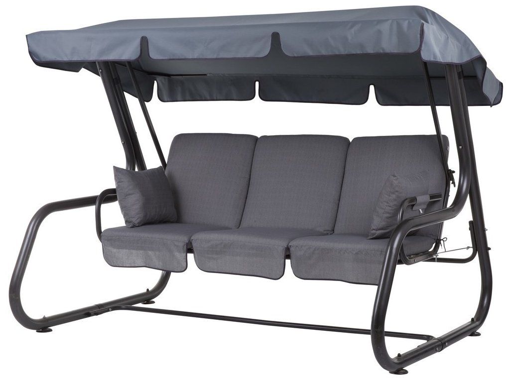 Houpačka pro 4 osoby s rozkládací sedačkou, která je upevněna na pružinách.