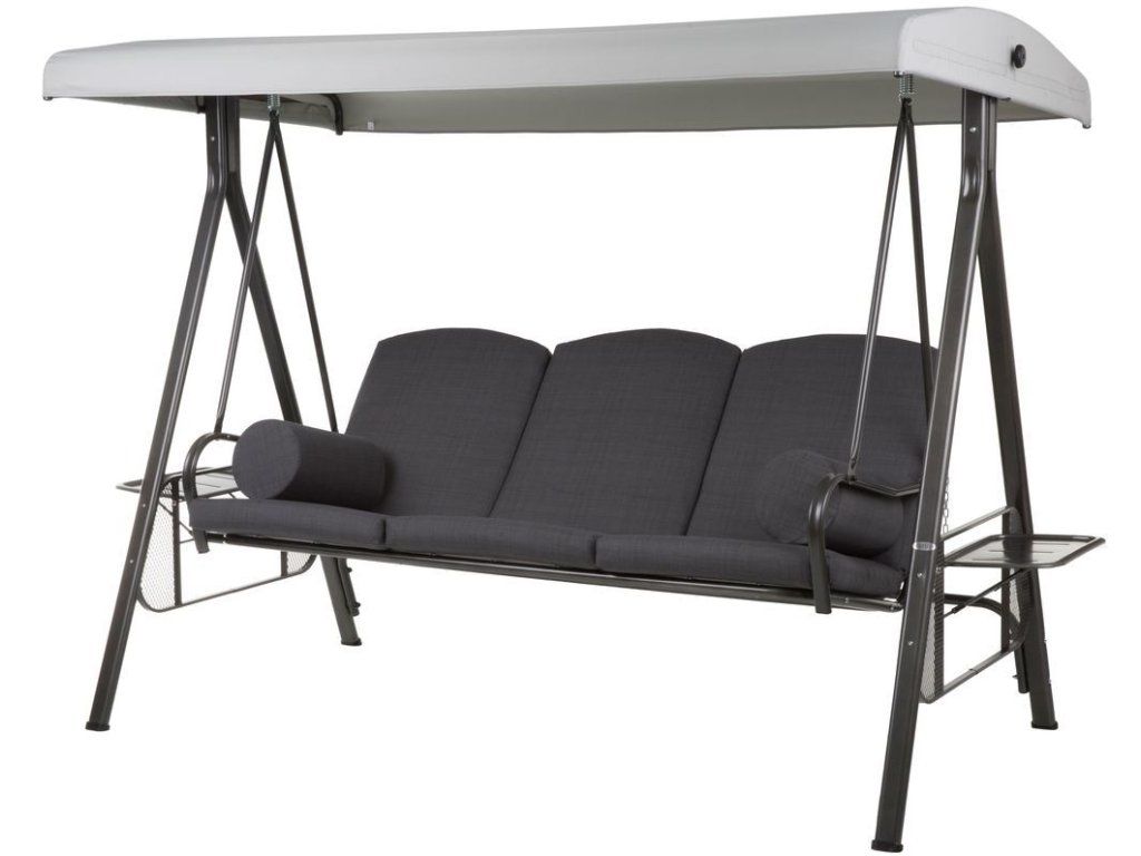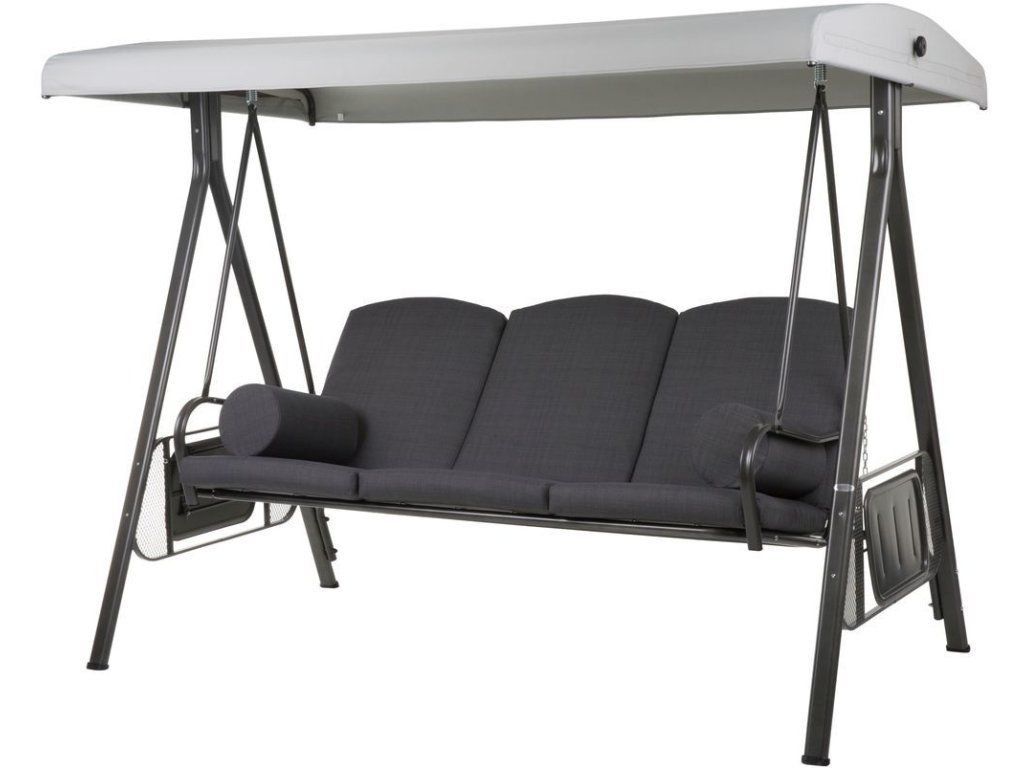 Houpačka pro 3 osoby s nastaviteným sklonem zádové části. Solidní, pevná konstrukce.