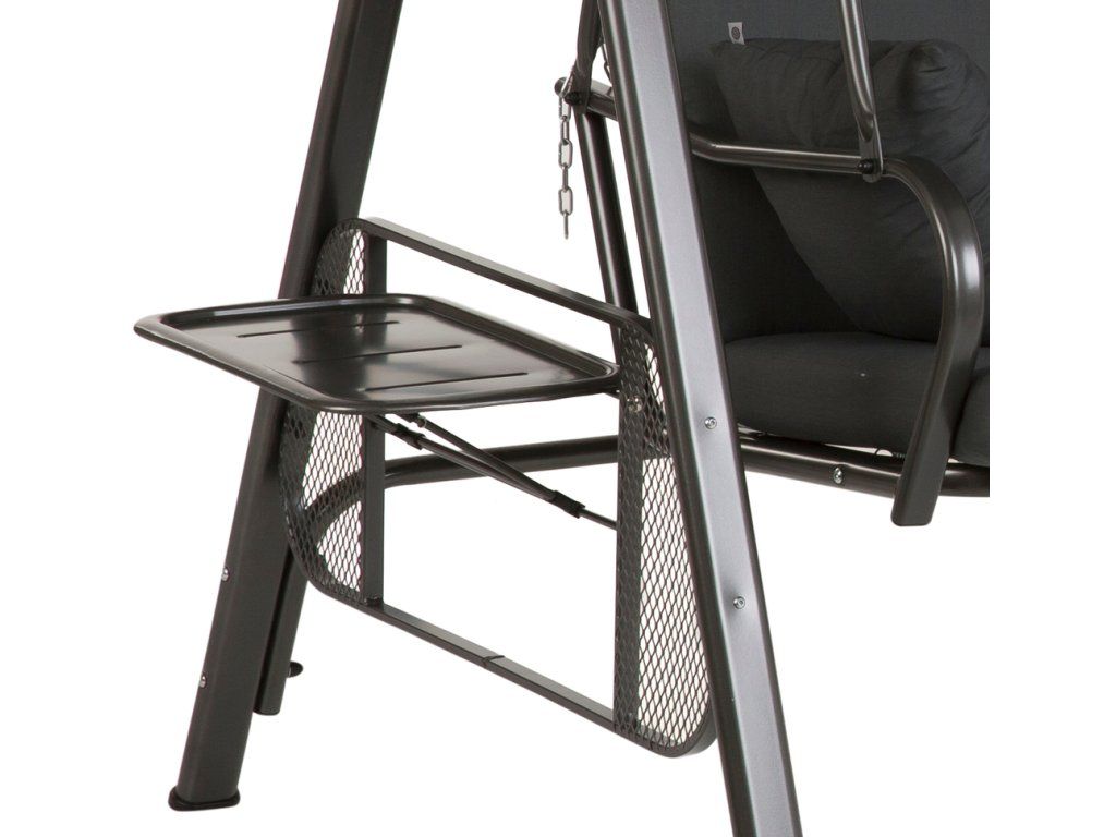 Součástí houpačky jsou 2 boční sklápěcí stolky (45x30cm)