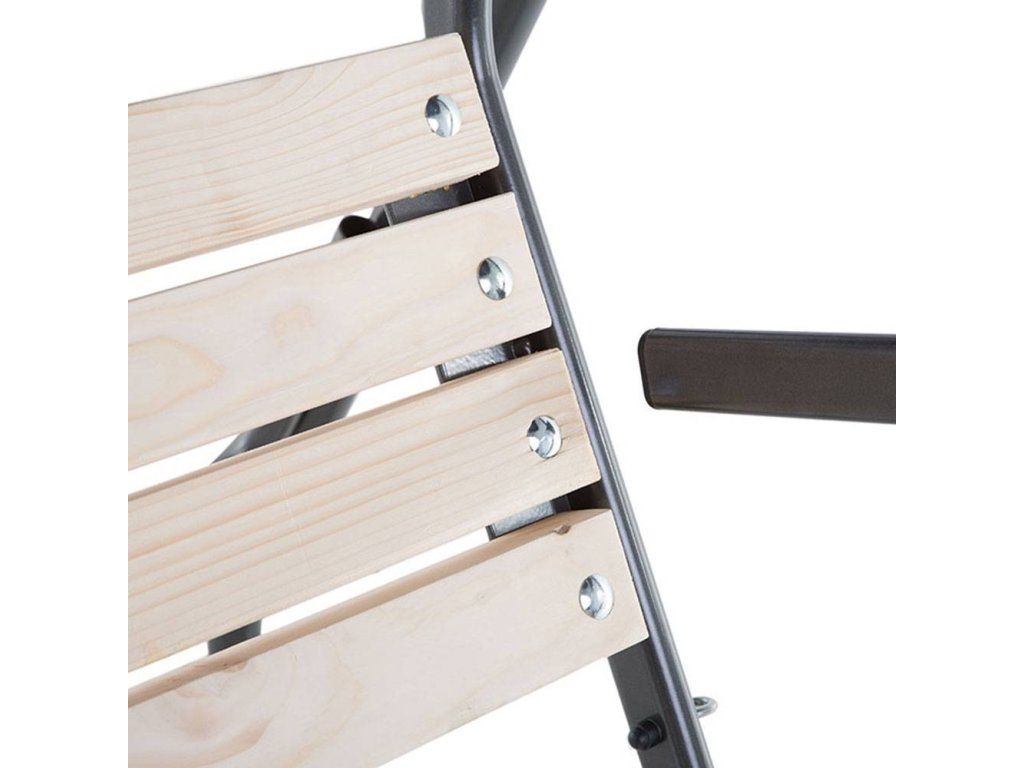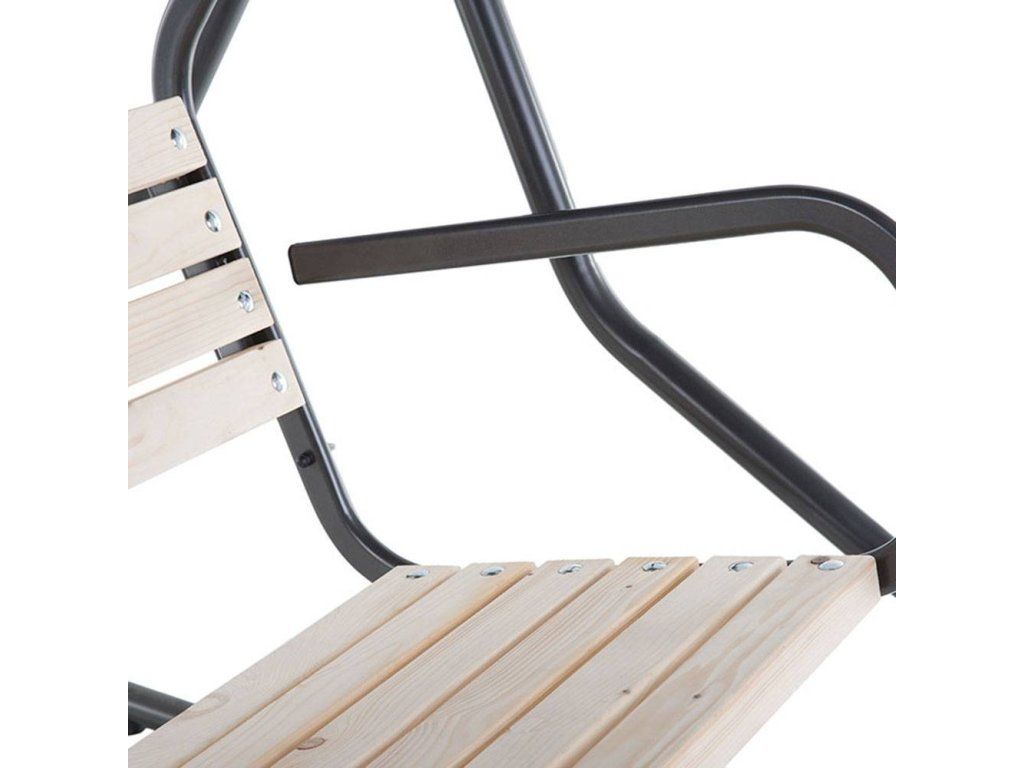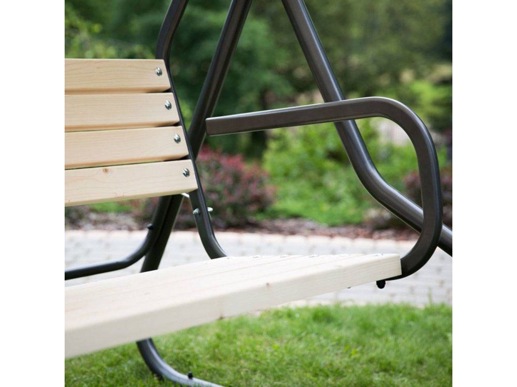Houpačka TOLEDO nabízí kombinaci ocelového rámu a sedadla v podobě dřevěné lavice. Je určena pro 3 osoby. Vyznačuje se solidní, pevnou konstrukcí, která zaručuje bezpečnost při jejím používání.