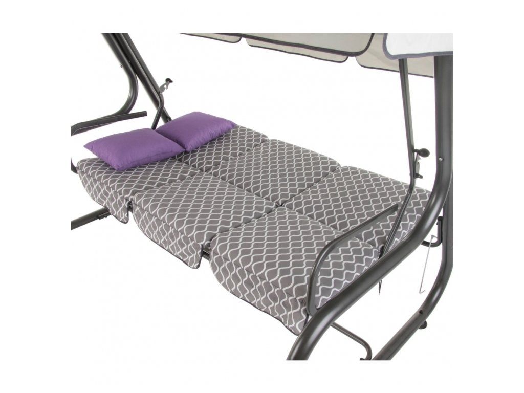 Robustní, výkonná konstrukce houpačky, tloušťka nosné trubky: Ø 63 x 1,5 mm. Rám malovaný práškovou polyesterovo-epoxidovou barvou v antracitovém odstínu. Sedadlo je možné sklopit do polohy vleže na zádech.
