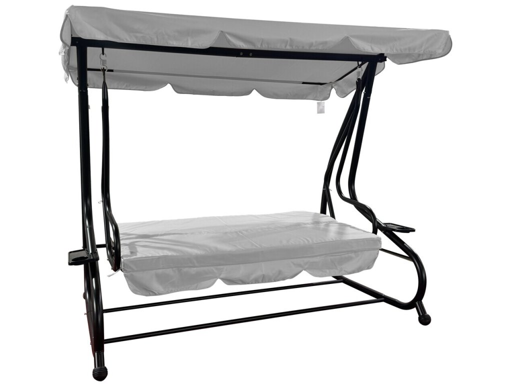 Ocelová konstrukce ošetřena práškovou barvou, podušky (voděodolný polyester 160 g), výplň polyesterová vata 8 cm, stříška (voděodolný polyester 180 g), pro 3 osoby