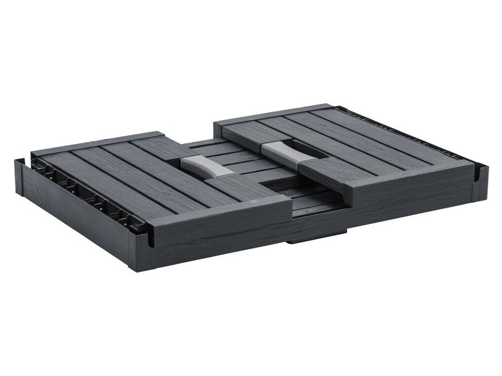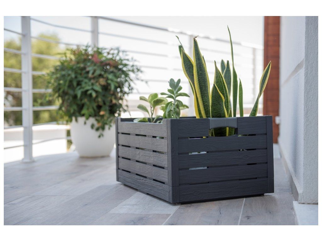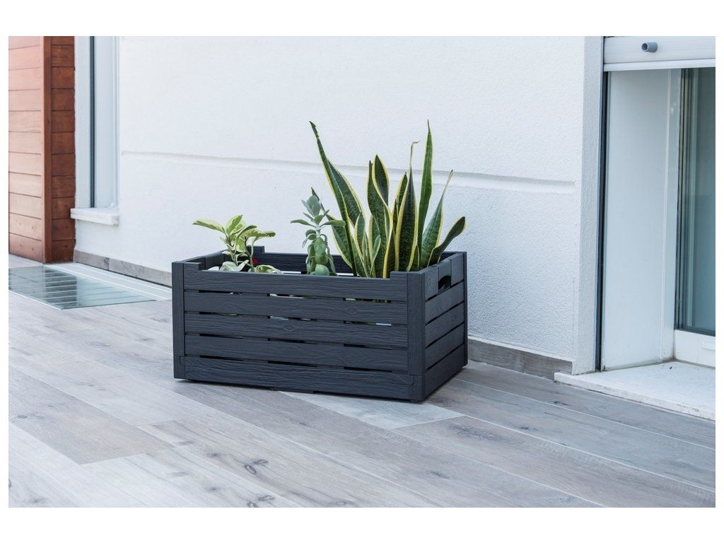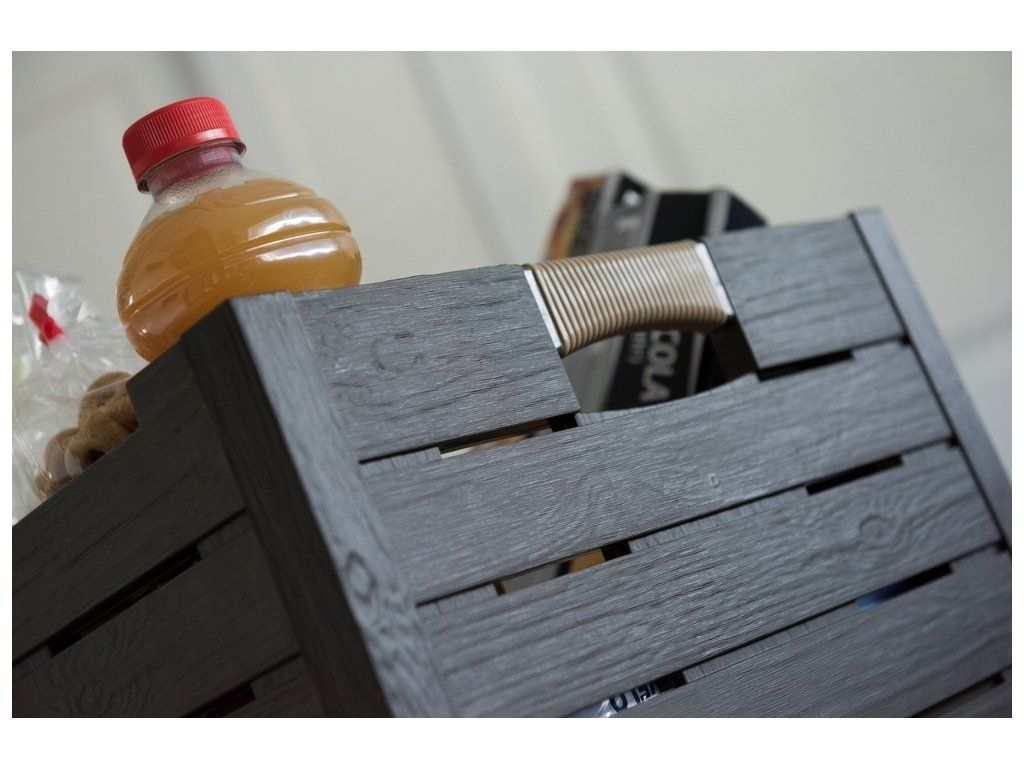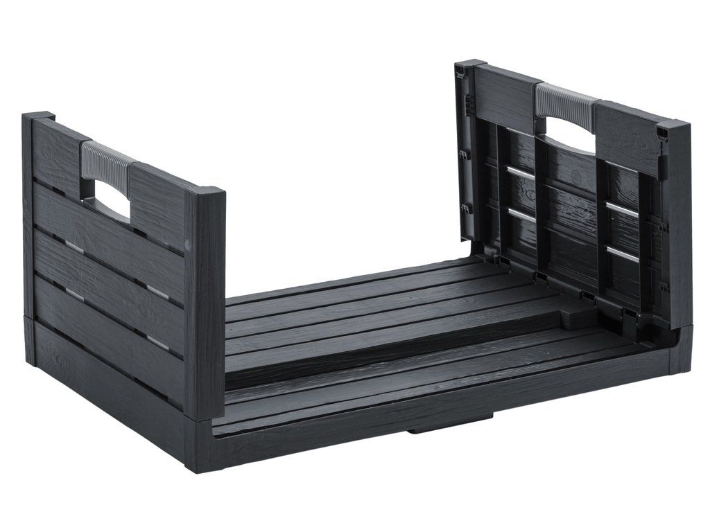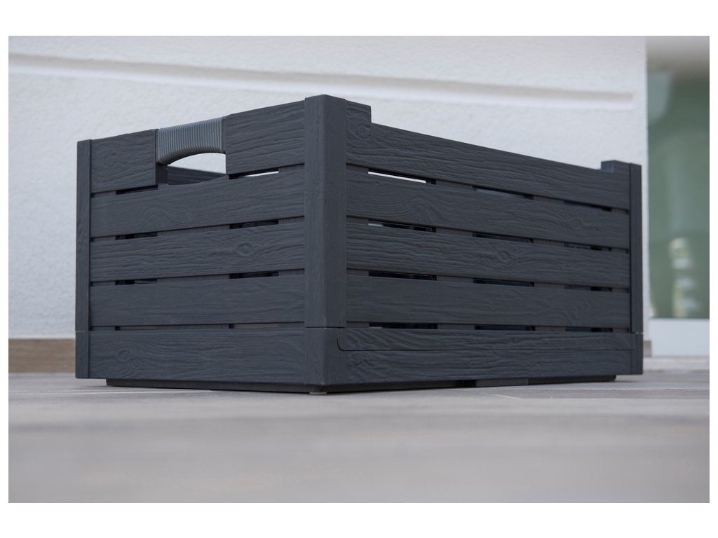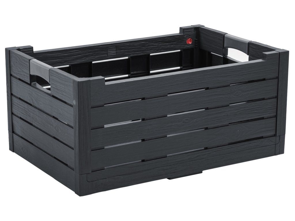 Elegantní grafitové provedení s imitací dřeva dodává přepravce moderní vzhled, který se hodí do každého prostředí. Pevná madla zajišťují pohodlné přenášení i plně naložené přepravky.