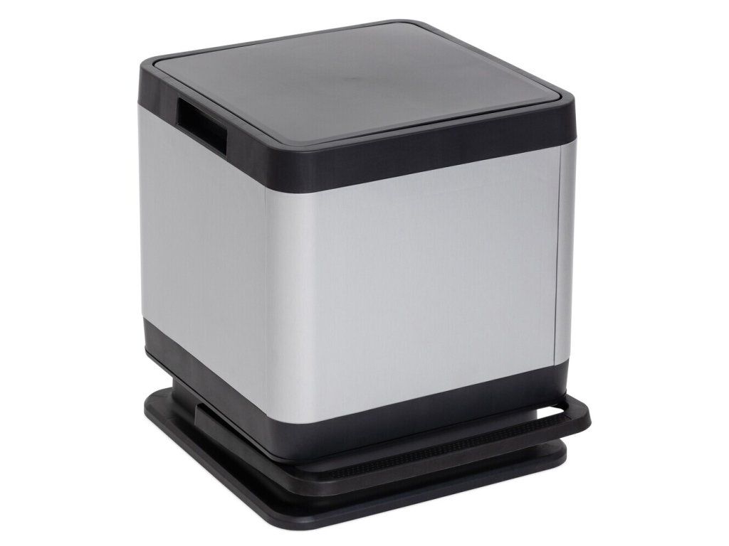 - Elegantní design s hliníkovým efektem, který dodává koši sofistikovaný a moderní vzhled, jež se snadno začlení do jakéhokoliv interiéru.