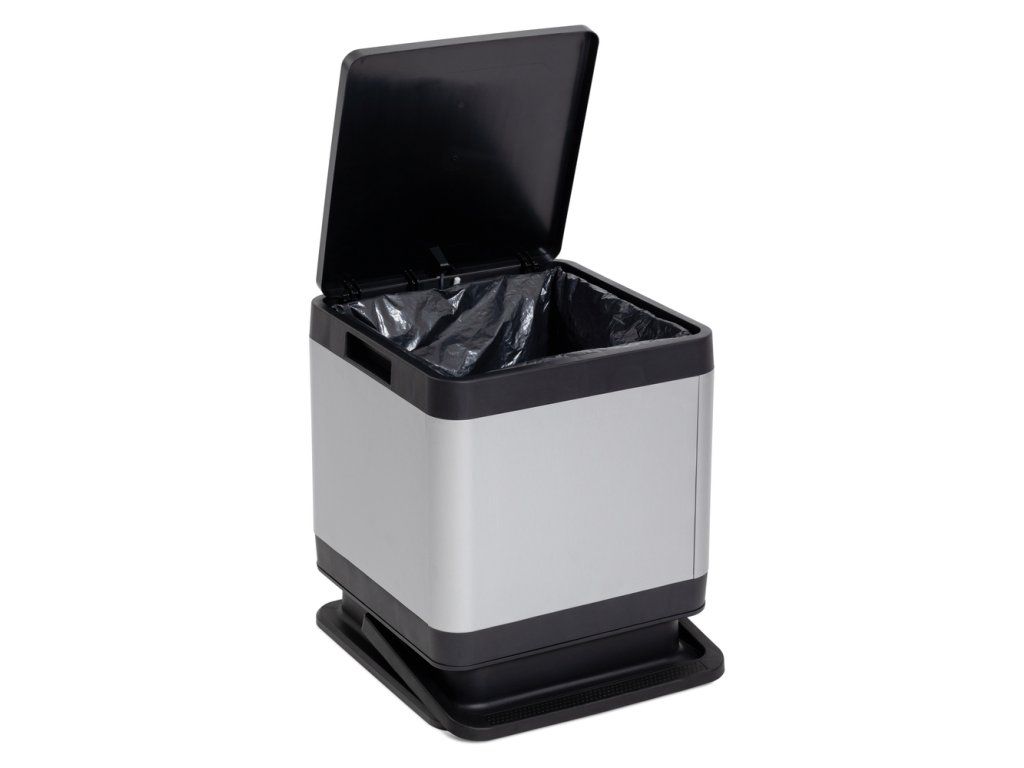 - Boční držadla a vnitřní rám pro pevné uchycení pytle na odpadky zajišťují snadnou manipulaci a výměnu pytlů.