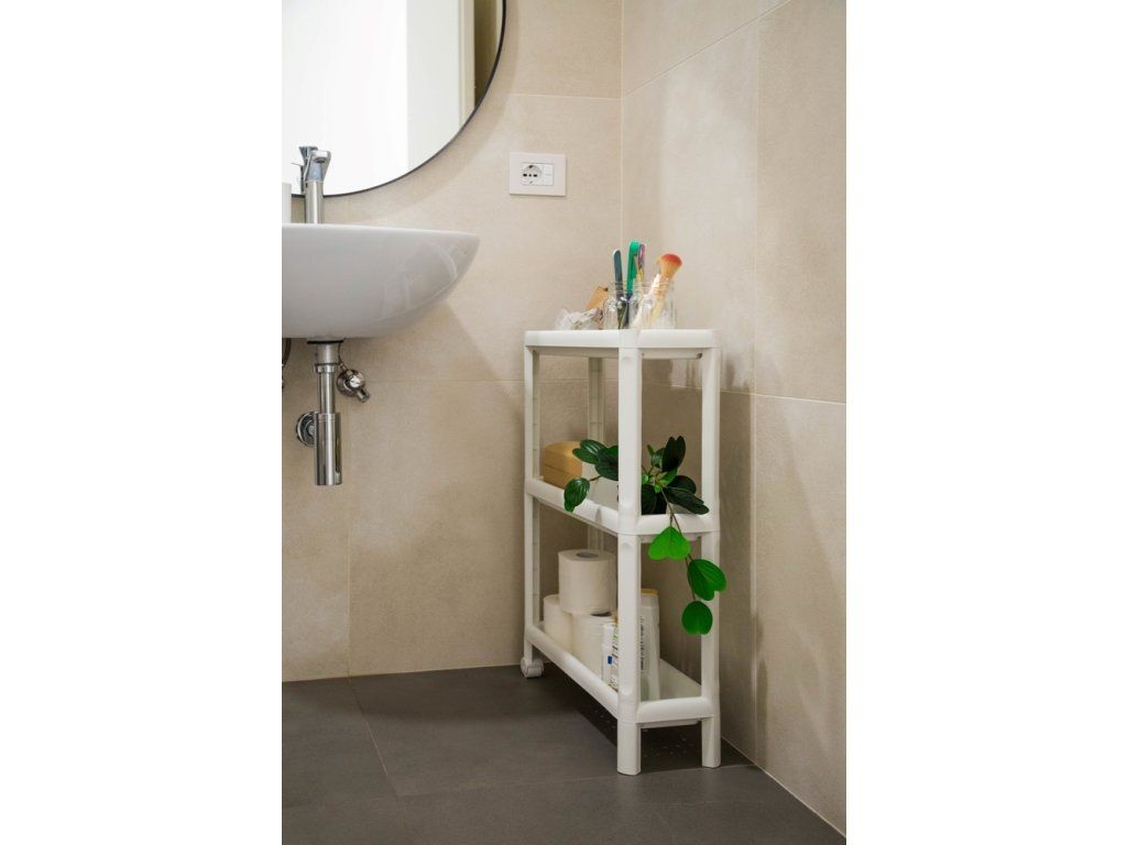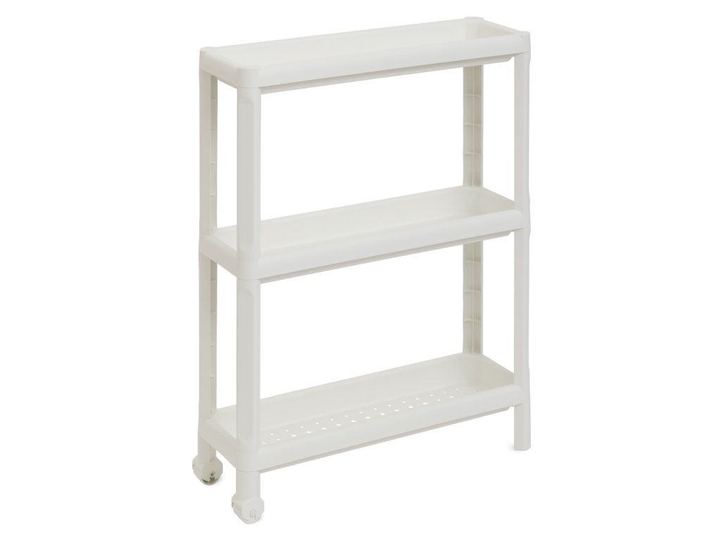 Regál TINA je třípatrový vozík s kolečky, který představuje praktický a stylový způsob pro efektivní využití malých prostorů a pro snadnou organizaci ve Vašem domě. Nabízí dodatečný prostor pro uložení potravin, kuchyňských pomůcek či jiných drobností v koupelně.