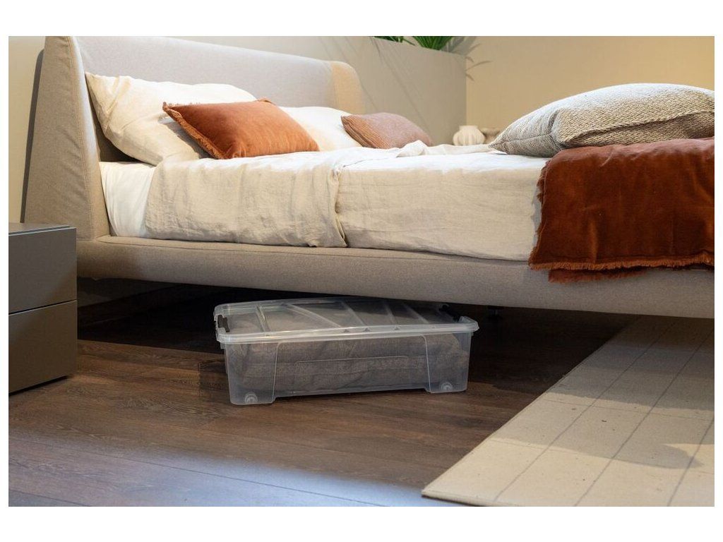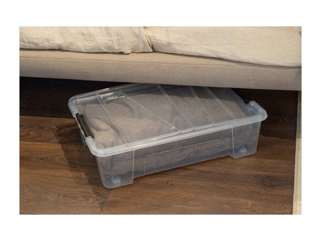 Díky pevnému víku s černými klipsy jsou Vaše věci chráněny před prachem a vlhkostí. Box je ideální pro skladování mimosezónního oblečení, obuvi či doplňků pod postelí, což Vám pomůže maximálně využít dostupný prostor.