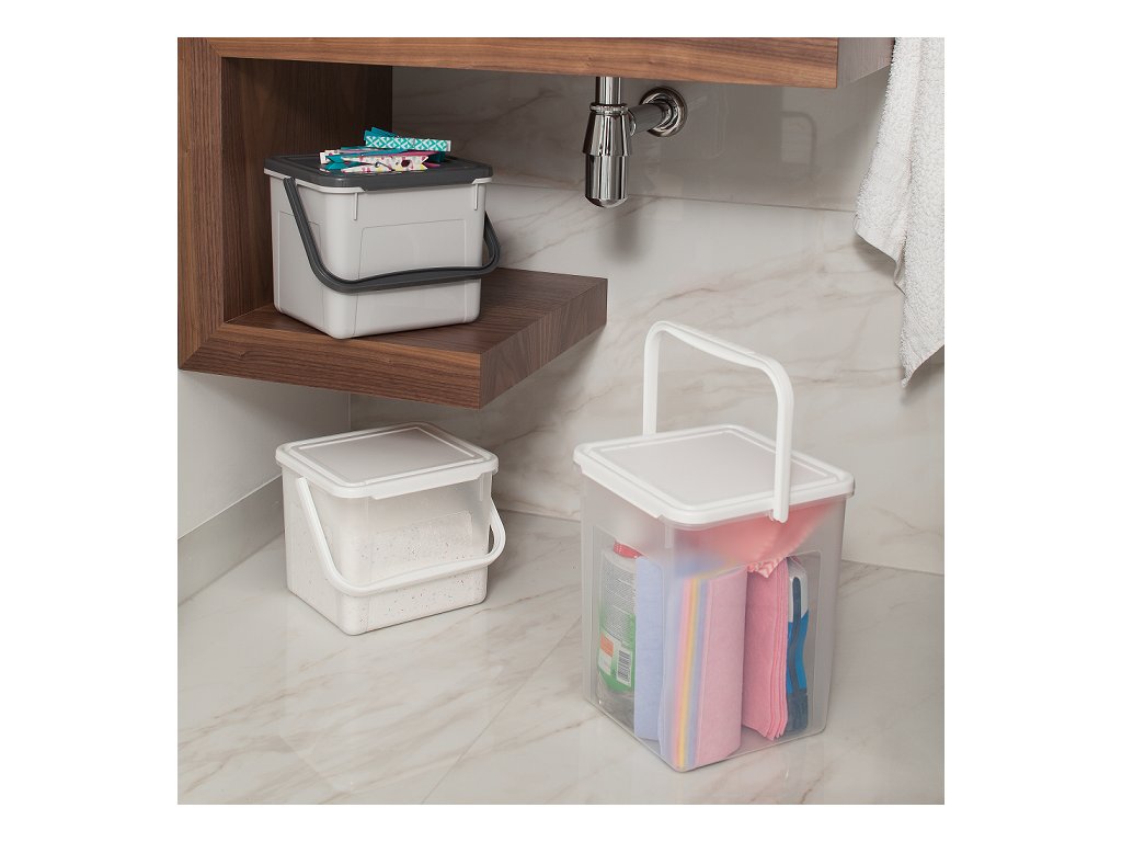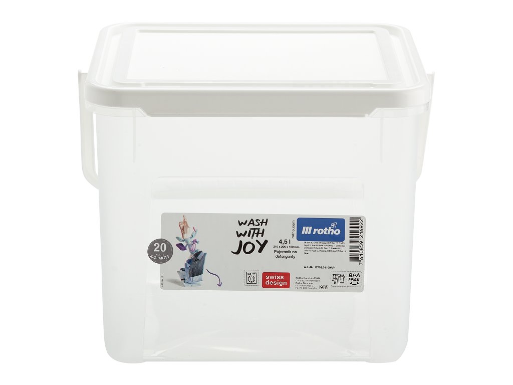 Plastový kontejner na uložení pracího prášku či dalších menších potřeb do domácnosti.