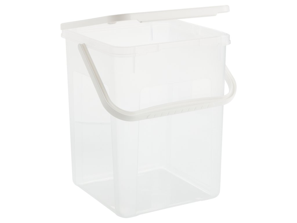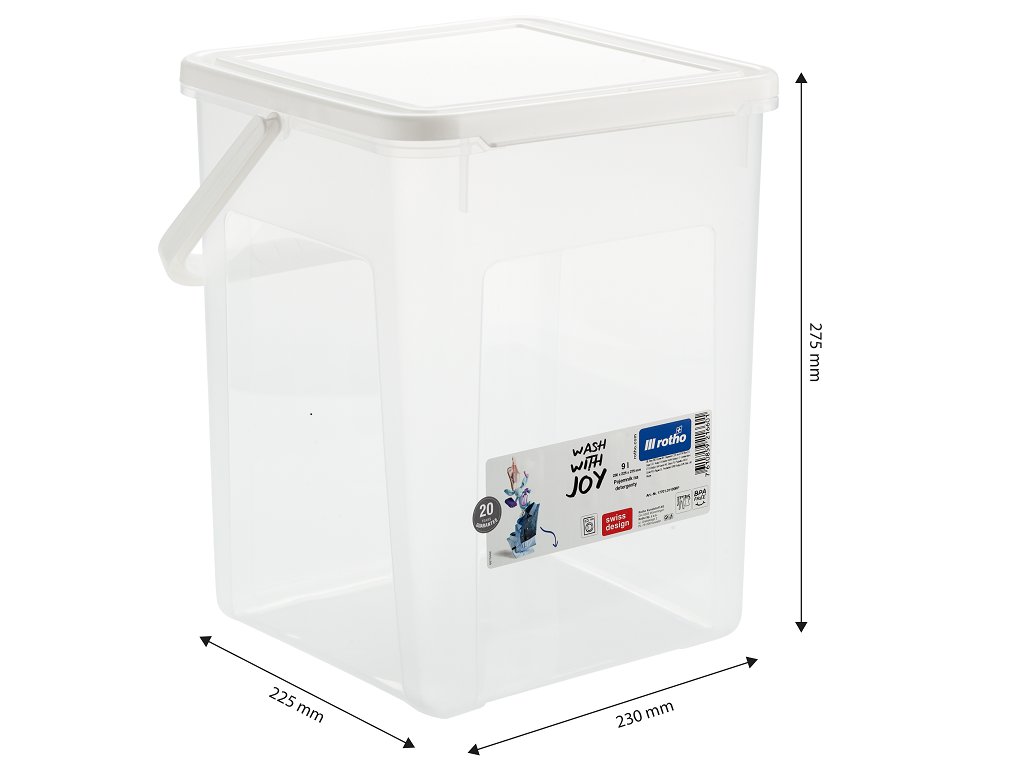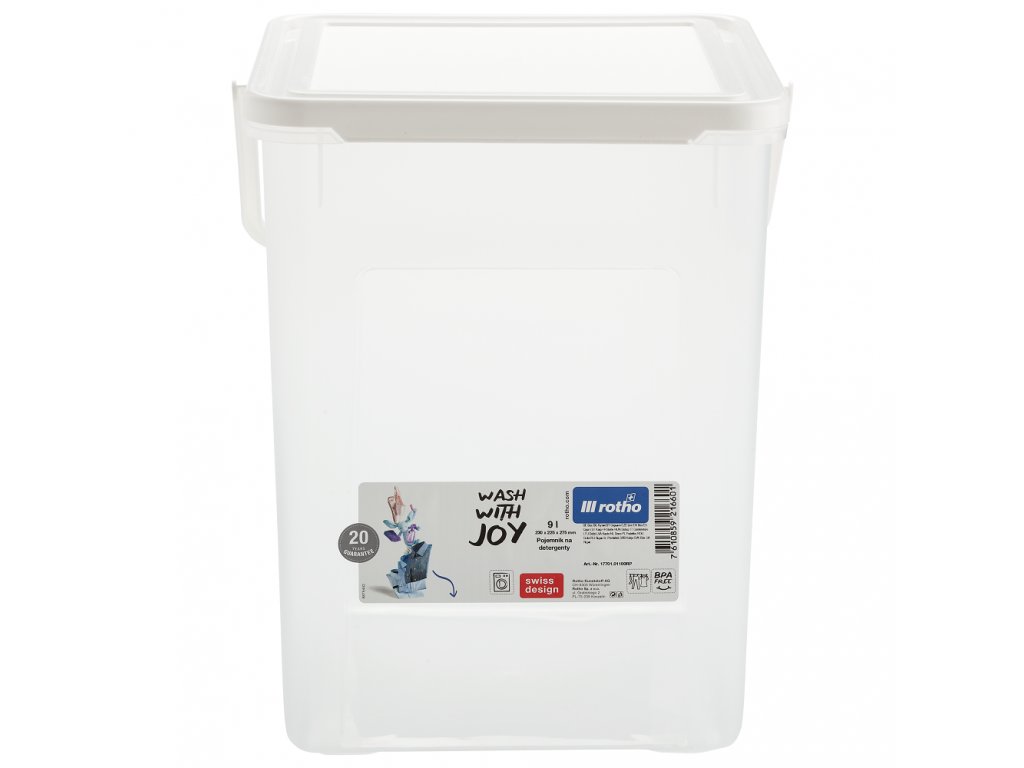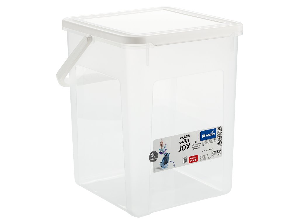 Plastový kontejner na uložení pracího prášku či dalších menších potřeb do domácnosti.