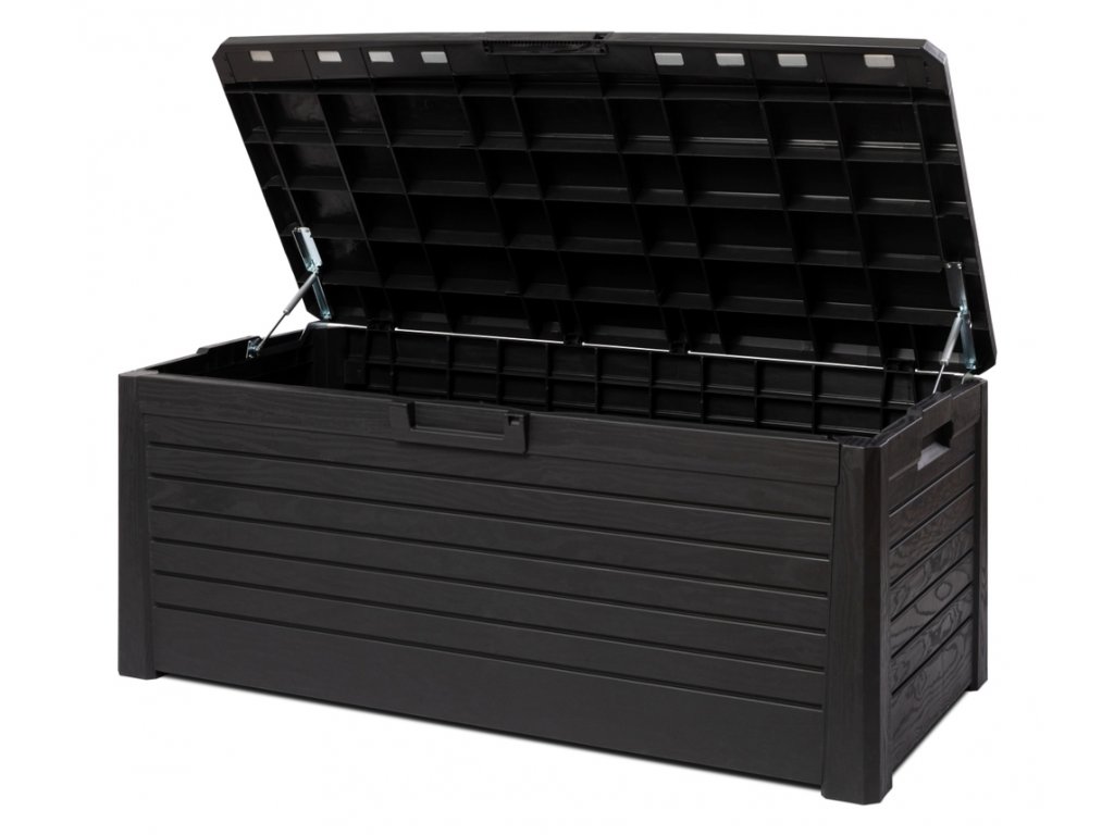 FLORIDA 550 l nabízí nekonečné možnosti využití. Můžete v něm uschovat vše, co potřebujete, od polštářů po hračky, a to vše na jednom místě. Co je však nejlepší, je to, že víko boxu má nosnost až 320 kg, takže se na něm můžete pohodlně posadit, což vytvoří další venkovní sezení na Vaší zahradě.