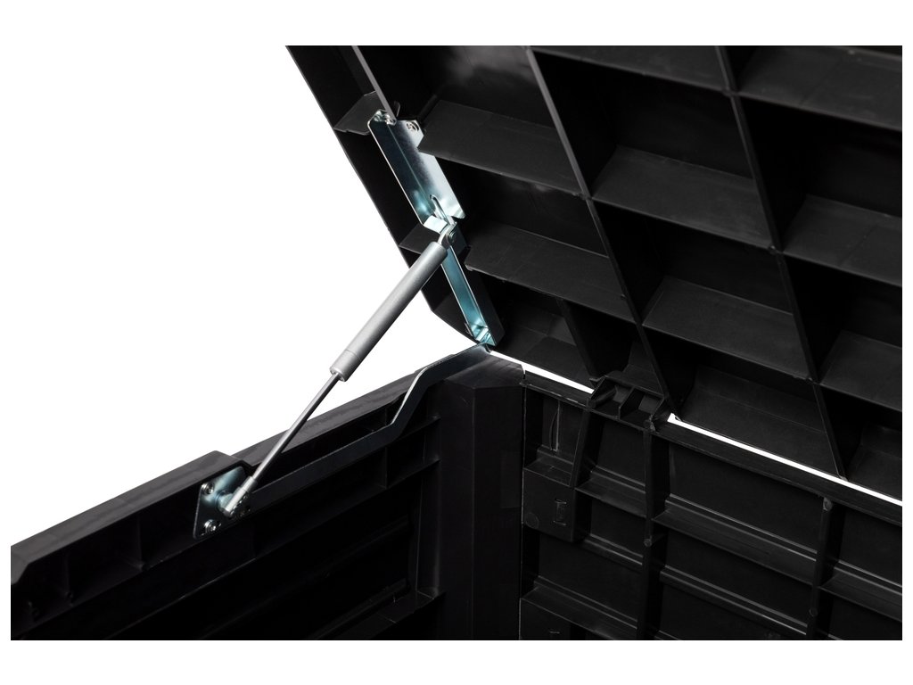 Pro snadné otevírání víka boxu jsou zde písty (plynové vzpěry), které Vám pomohou s každodenním používáním. Navíc je úložný box FLORIDA 550 l vyroben v imitaci dřevěného povrchu, což dodá Vaší zahradě nejen praktický úložný prostor, ale i stylový vzhled.