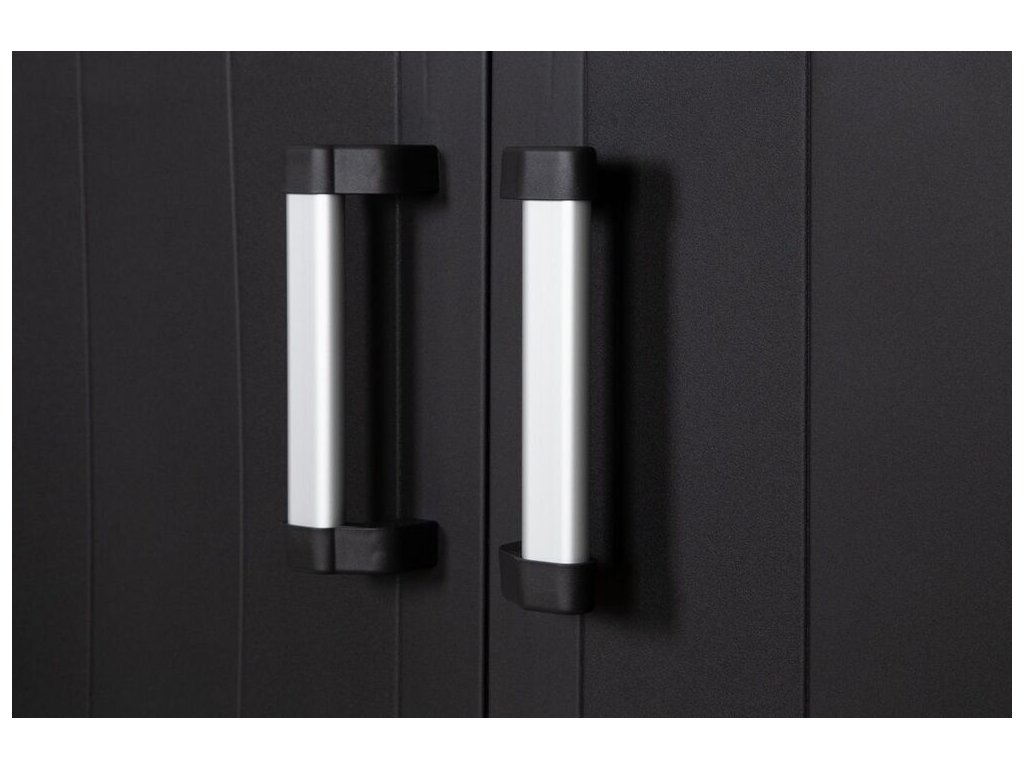 Prostorná praktická plastová dvoukřídlá skříňka GARAGE MEGA LOW v černé barvě.