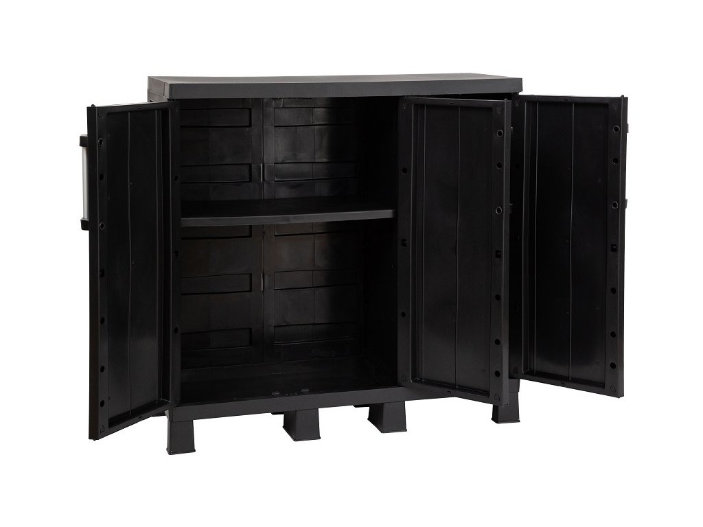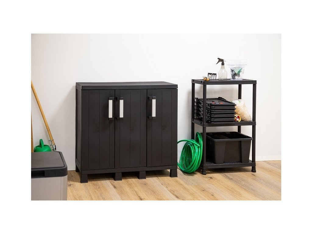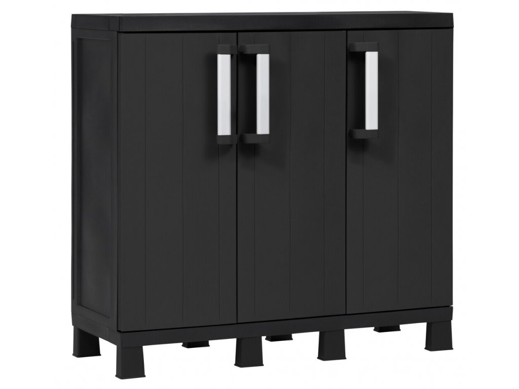 Praktická plastová třídvéřová skříňka GARAGE MIDI TRIO LOW v černé barvě.