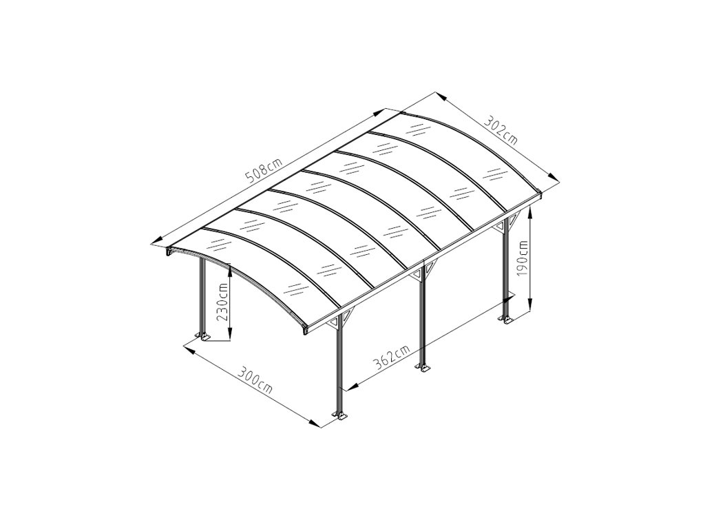 Hliníkový, volně stojící přístřešek na auto ALLEN o rozměrech 508x302 cm představuje ideální způsob zastřešení parkovacího místa. Přístřešek nabízí dokonalou ochranu pro Vaše auto nebo venkovní prostor díky své pevné a odolné konstrukci.