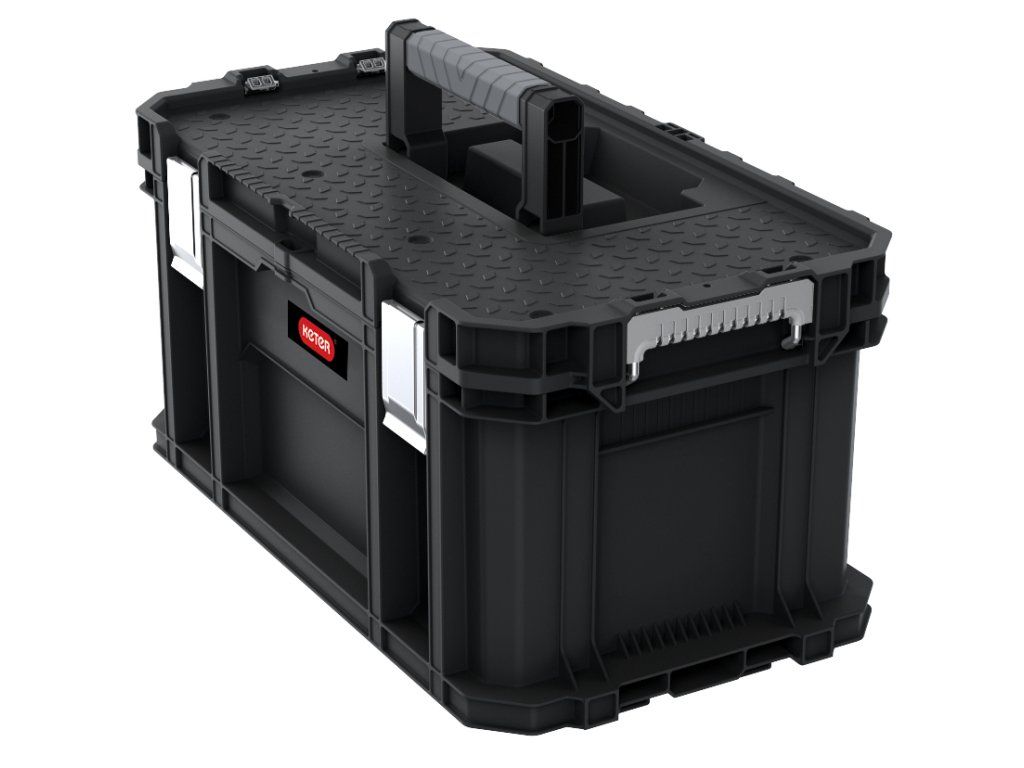 Box je vyroben z odolného plastu, obsahuje kovové spony pro pevné uzavření a praktickou rukojeť pro pohodlné přenášení i při vyšší hmotnosti nákladu. Nosnost boxu je až 15 kg.