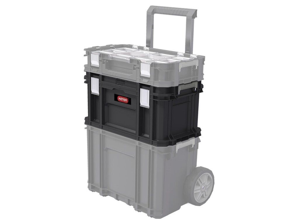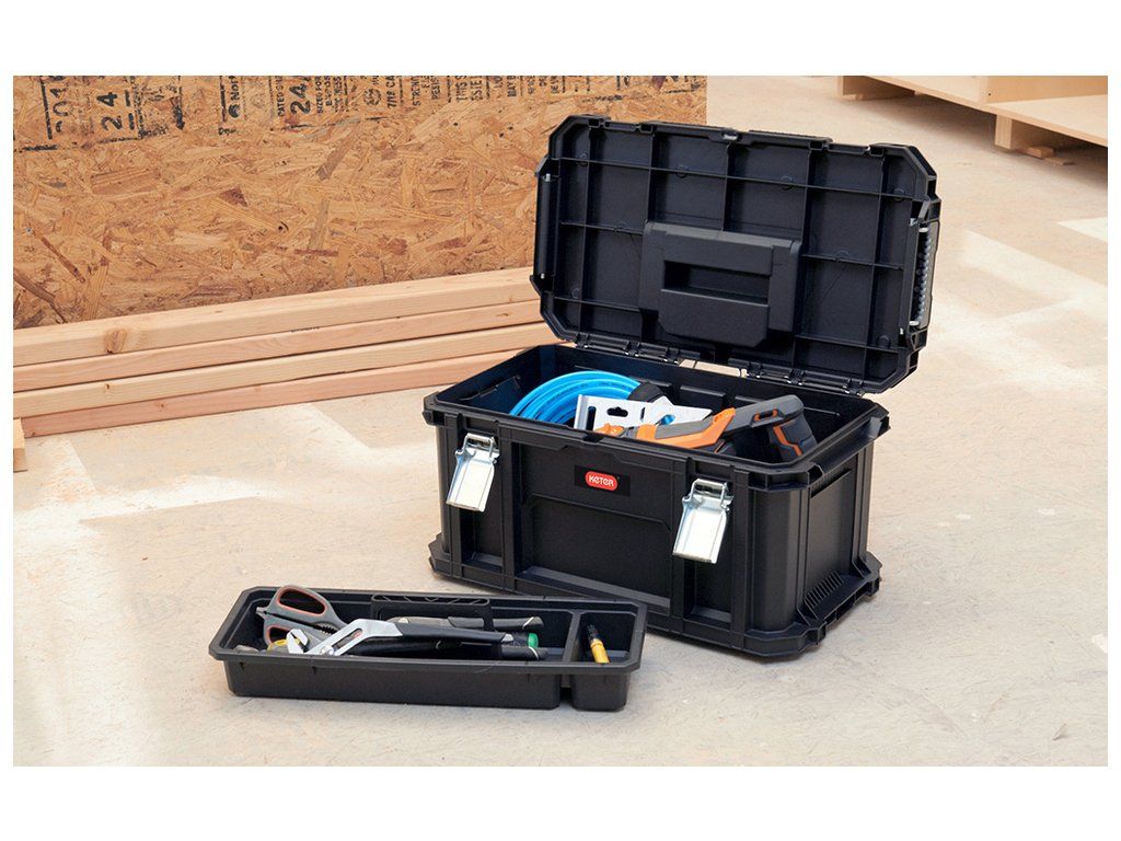 Uvnitř boxu nabízí dostatek místa pro běžné ruční nářadí, které snadno uložíte do prostorné vany a vyjímatelného tácu.