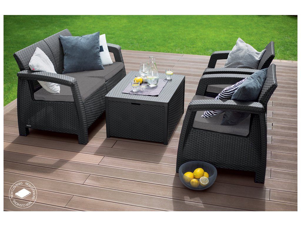 KETER CORFU BOX set - grafit + šedé podušky