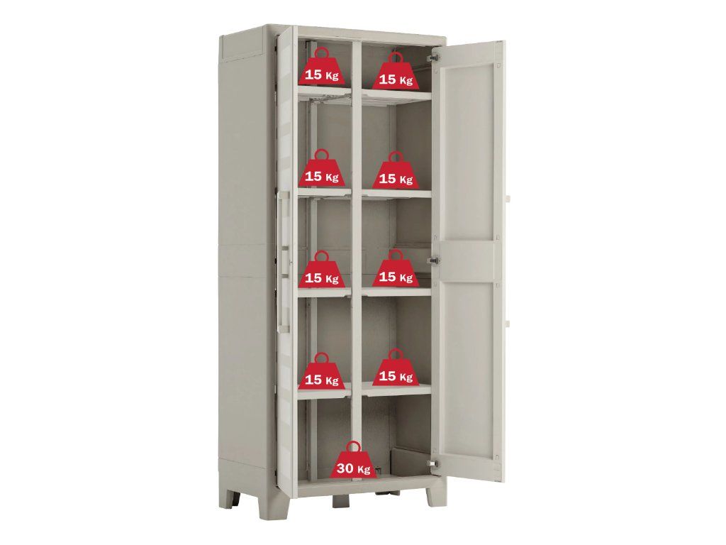 Když se k dobrým vlastnostem plastu přidá nespočet skvělých vychytávek, vzniká policová skříň GULLIVER MULTISPACE – bytelná a vzhledná ochrana pro zahradnické náčiní, hadice, ale i deky a vše ostatní, co na zahradě potřebujete. Samozřejmě je vhodná i do dílny či garáže. Díky nastavitelným policím snadno umístíte i vysavač, koště či jiné vetší předměty.