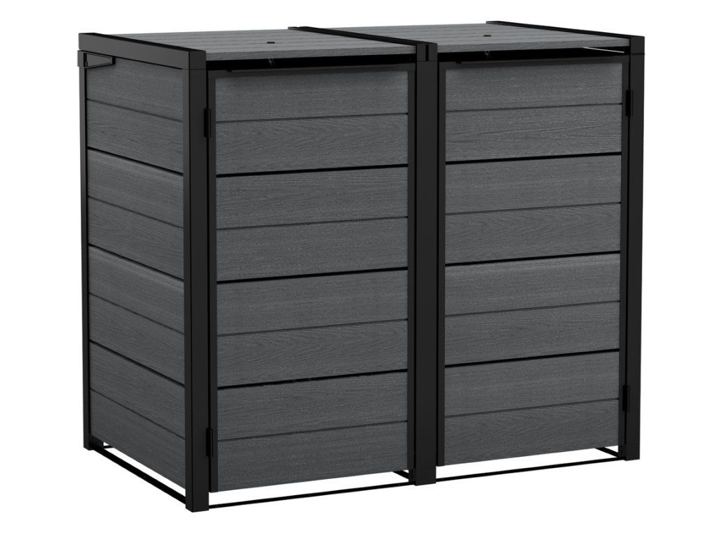 Elegantní a praktické řešení pro třídění odpadu a zakrytí popelnic. Tato skříň HIDE AWAY je navržena pro dvě popelnice o objemu 240 L a nabízí stylový způsob, jak udržet pořádek na zahradě či před domem.
