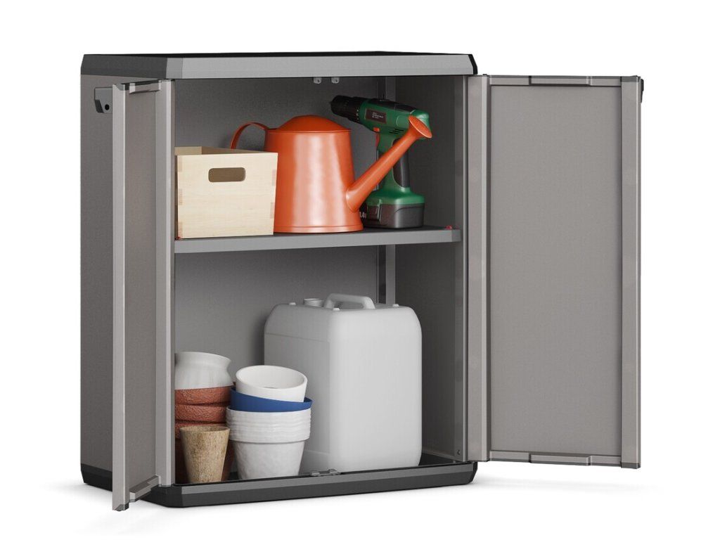 Pevné panty, možnost uzamčení a odolnost skříně patří mezí její přednosti. Díky praktickému designu zapadne téměř do každého prostoru a poskytne úkryt pro mnoho pomůcek, nářadí a vybavení.