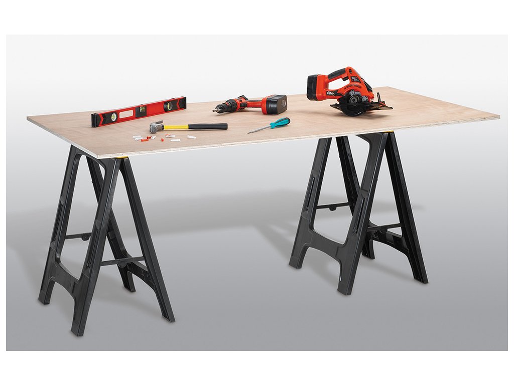 Lehká skládací konstrukce umožní snadné přenášení i skladování - podstavce jednoduše složíte a uložíte do kouta dílny či do kufru auta. Přes svou lehkou konstrukci zvládnou pracovní kozy zatížení až 340 kg.