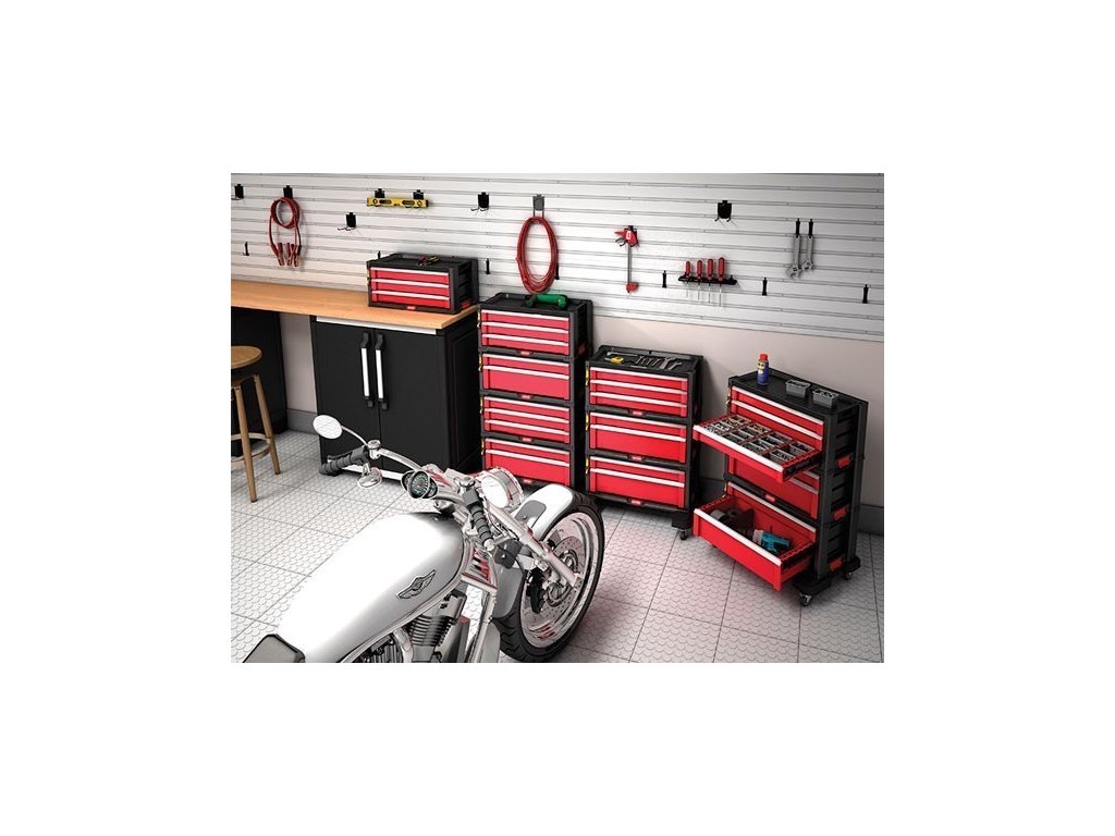 - obsahuje hlubokou zásuvku s vyjímatelnými přepážkami na větší a těžší nářadí
