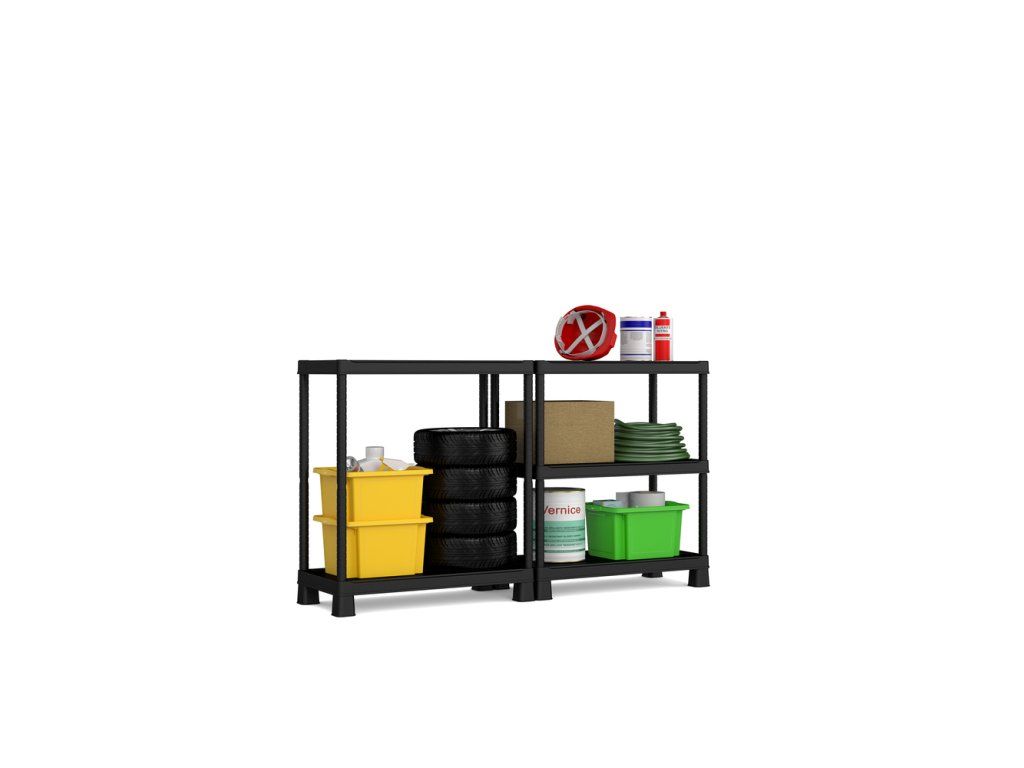 Plastový regál PLUS shelf tribac unese až 300 kg a můžete ho složit do dvou různých variant.
