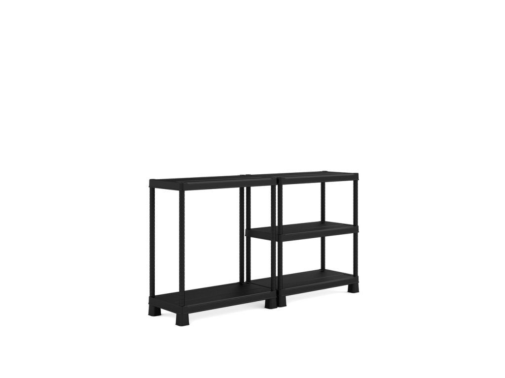 Dva způsoby smontování plastového regálu PLUS shelf tribac se přizpůsobí Vašemu prostoru.