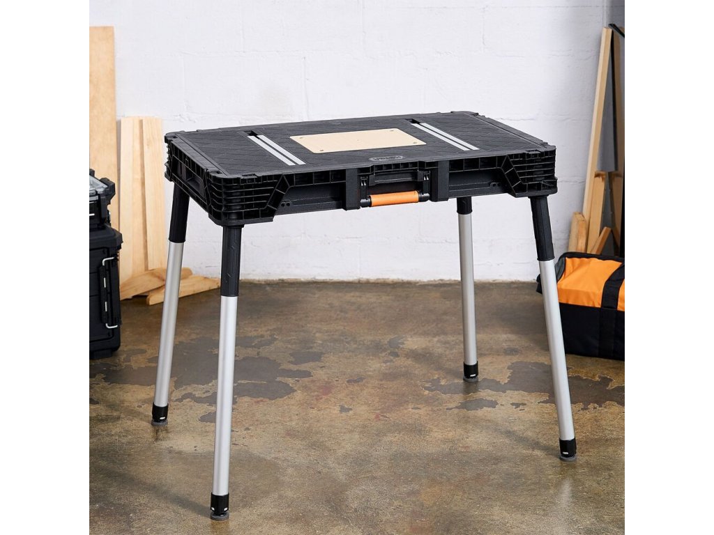Tento robustní stůl unese až 450 kg, takže je ideální pro dílenské i montážní práce. Zároveň je však jeho konstrukce navržena tak, aby byl stůl dostatečně lehký a snadno přemýstitelný - můžete ho bez problému přenést tam, kde ho zrovna potřebujete, a po práci jednoduše složit a uložit.