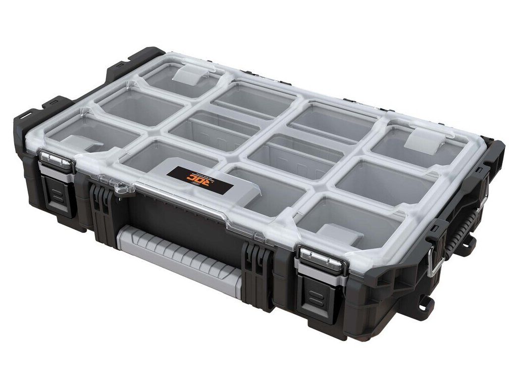 Praktický pomocník do dílny, který vám zaručeně pomůže udržet pořádek. Uvnitř je 8 menších a 2 větší vyjímatelné přihrádky, takže si obsah snadno uspořádáte dle aktuální potřeby. Průhledné víko umožňuje rychle zkontrolovat, co je uvnitř, aniž byste organizér museli otevírat a speciální těsnění (krytí IP65) chrání obsah před prachem a vodou. Odolné západky zajišťují bezpečné uzavření a tím minimalizují riziko vysypání obsahu. Organizér je dále vybaven rukojetí pro snadné přenášení. Nosnost organizéru je až 25 kg.