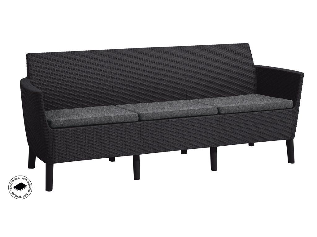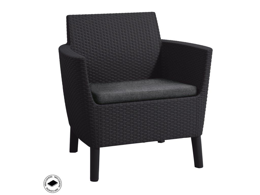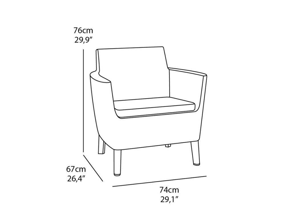 Produkt je dodáván s pohodlnými poduškami ve stylových barvách. Lehká a stabilní konstrukce nábytku se skvěle hodí do exteriéru i interiéru.