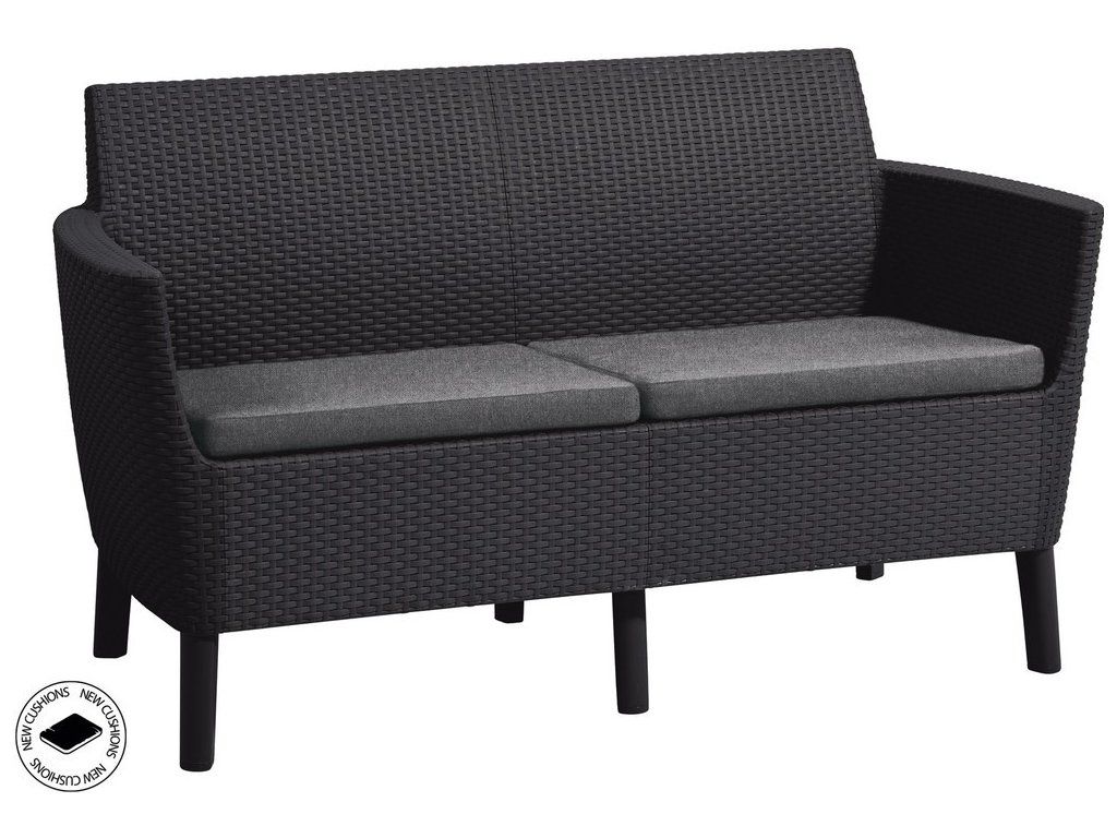 Produkt je dodáván s pohodlnými poduškami ve stylových barvách. Lehká a stabilní konstrukce nábytku se skvěle hodí do exteriéru i interiéru.