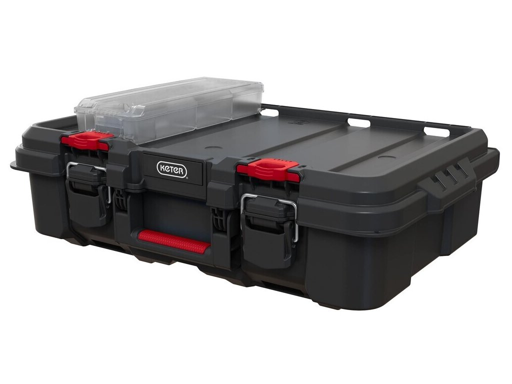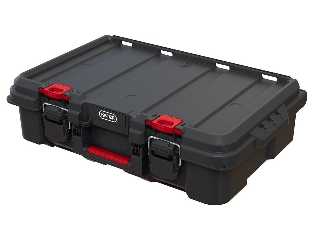 Pevné západky zajišťují spolehlivé uzavření víka a obsah zůstává bezpečně uložen i při častém přenášení. Kufr je opatřen madlem pro snadnou manipulaci. Nosnost kufru je až 10 kg.