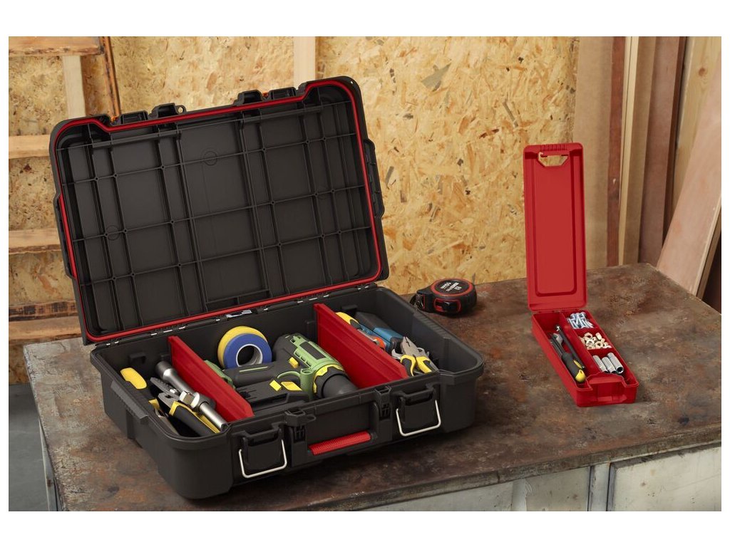 Vnitřní prostor lze jednoduše přizpůsobit vlastním potřebám pomocí vyjímatelných přepážek a samostatného miniorganizéru, takže má každá součástka své místo.