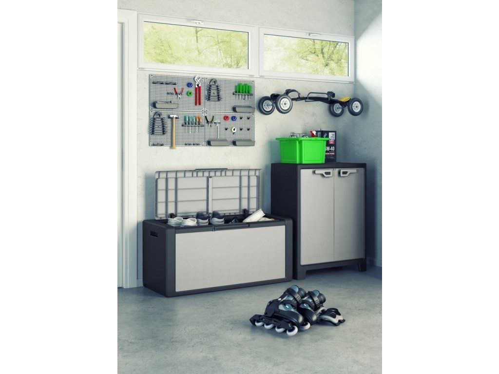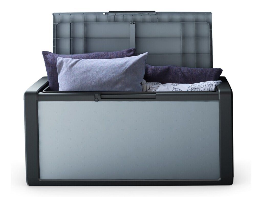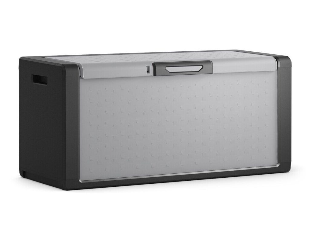 Stylový design v šedočerném provedení se hodí do každého prostoru – na terasu, balkon, zahradu či do garáže. Box je voděodolný, takže se nemusíte obávat uložení polštářů, dek či jiných textilií. Pro vyšší bezpečnost je navíc možné jej uzamknout pomocí visacího zámku (není součástí balení).