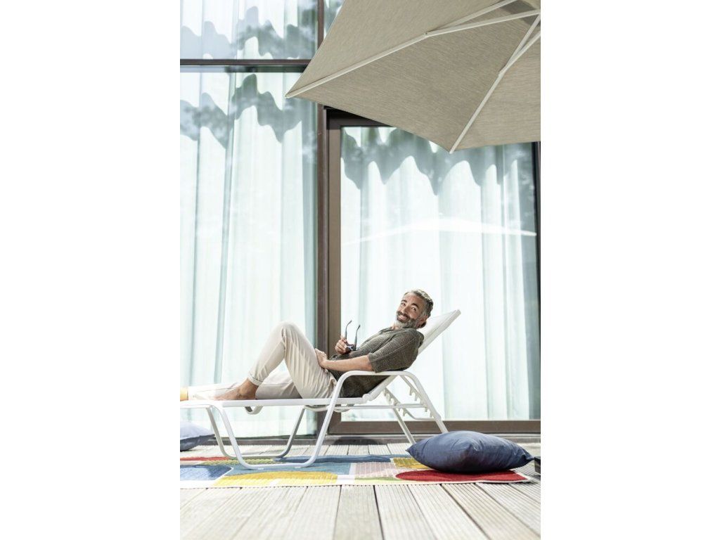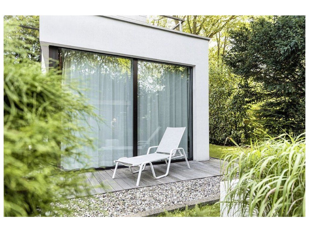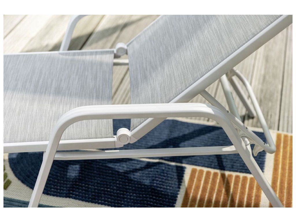 Kvalitní hliníkové stohovatelné lehátko v moderním designu.