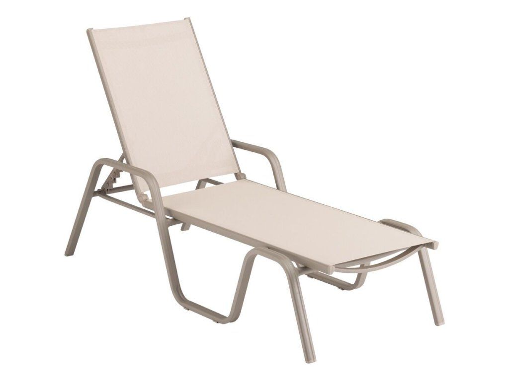 Kvalitní hliníkové stohovatelné lehátko v moderním designu.