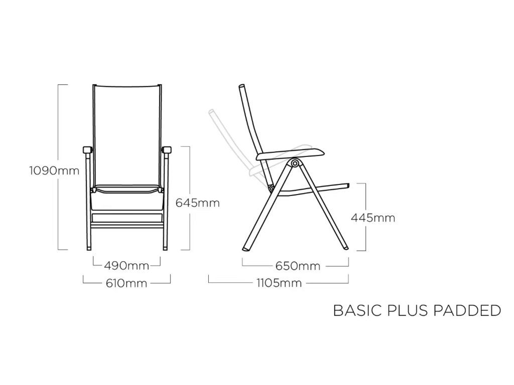 Toto velmi pohodlné hliníkové křeslo BASIC PLUS PADDED s vysokou opěrkou a kvalitní textilií je ideální volbou pro každého, kdo hledá spojení moderního stylu, pohodlí a dlouhé životnosti.