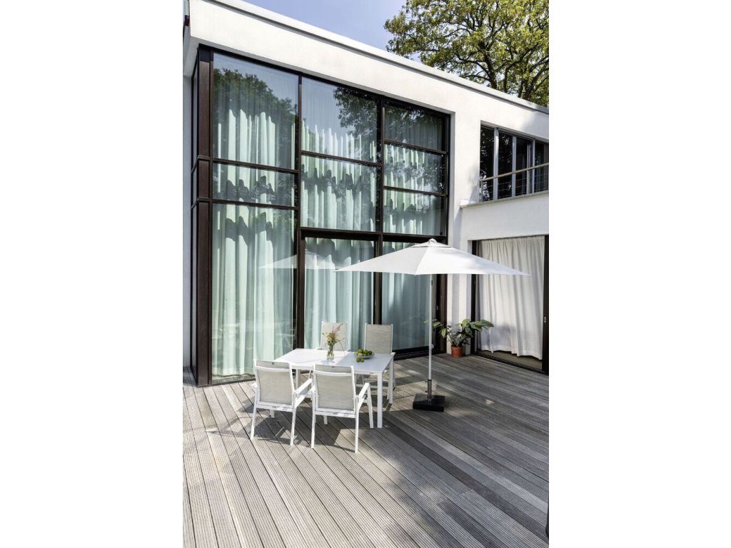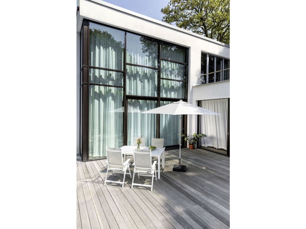 - Odlehčená hliníková konstrukce – pevná, stabilní a 100% odolná vůči povětrnostním vlivům.
